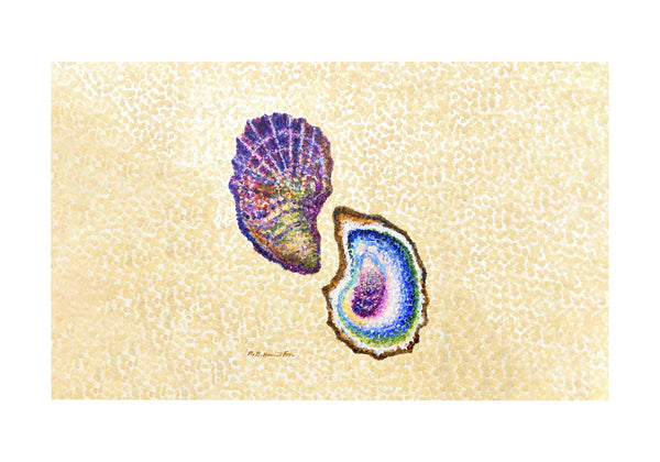 These decorative floor mats are made with a synthetic, low pile washable material. They have a non-slip rubber backing. Our small door mats measure 18x26 and our larger mats measure 30x50. All of our products are based on designs by artists R.B. Hamilton and Betsy Drake and are printed in the USA from imported materials.