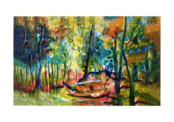 These decorative floor mats are made with a synthetic, low pile washable material. They have a non-slip rubber backing. Our small door mats measure 18x26 and our larger mats measure 30x50. All of our products are based on designs by artists R.B. Hamilton and Betsy Drake and are printed in the USA from imported materials.