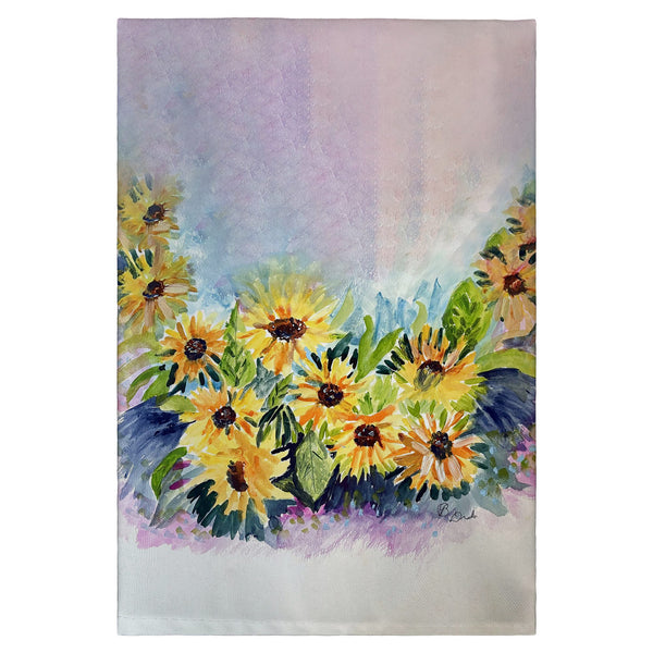 Guest/tea towels measure approximately 20x20. Machine washable and wrinkle free. All of our products are based on designs by artists R.B. Hamilton and Betsy Drake and are printed in the USA from imported materials.