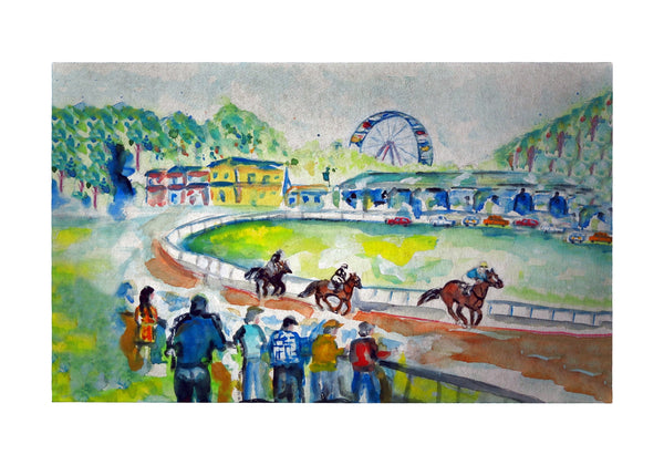These decorative floor mats are made with a synthetic, low pile washable material. They have a non-slip rubber backing. Our small door mats measure 18x26 and our larger mats measure 30x50. All of our products are based on designs by artists R.B. Hamilton and Betsy Drake and are printed in the USA from imported materials.