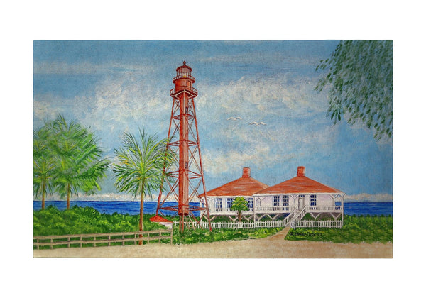 These decorative floor mats are made with a synthetic, low pile washable material. They have a non-slip rubber backing. Our small door mats measure 18x26 and our larger mats measure 30x50. All of our products are based on designs by artists R.B. Hamilton and Betsy Drake and are printed in the USA from imported materials.
