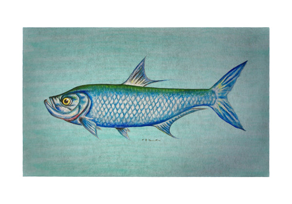 These decorative floor mats are made with a synthetic, low pile washable material. They have a non-slip rubber backing. Our small door mats measure 18x26 and our larger mats measure 30x50. All of our products are based on designs by artists R.B. Hamilton and Betsy Drake and are printed in the USA from imported materials.
