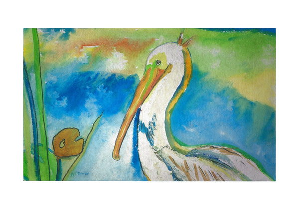 These decorative floor mats are made with a synthetic, low pile washable material. They have a non-slip rubber backing. Our small door mats measure 18x26 and our larger mats measure 30x50. All of our products are based on designs by artists R.B. Hamilton and Betsy Drake and are printed in the USA from imported materials.